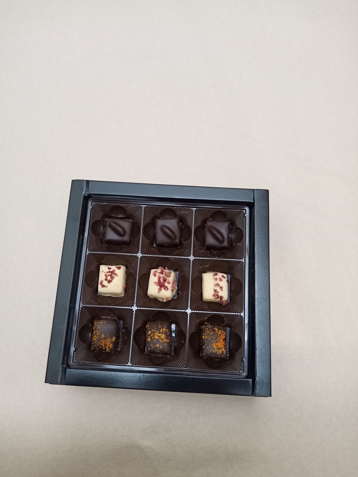 - 3 шт. - марципан в темном шоколаде с обсыпкой из сушеной облепихи