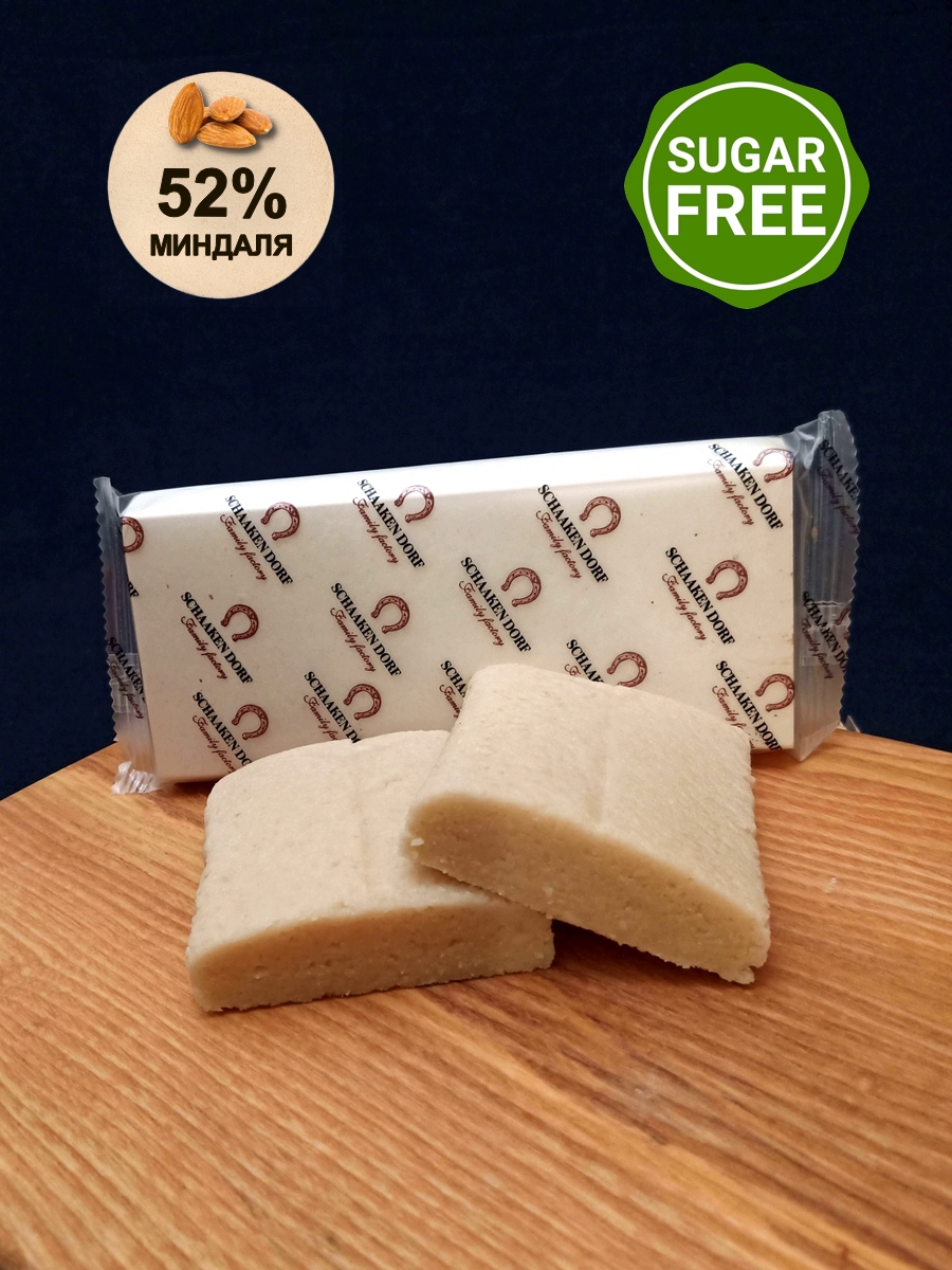 Марципановая масса без сахара с содержанием миндаля 52%. Масса нетто - 200 грамм.