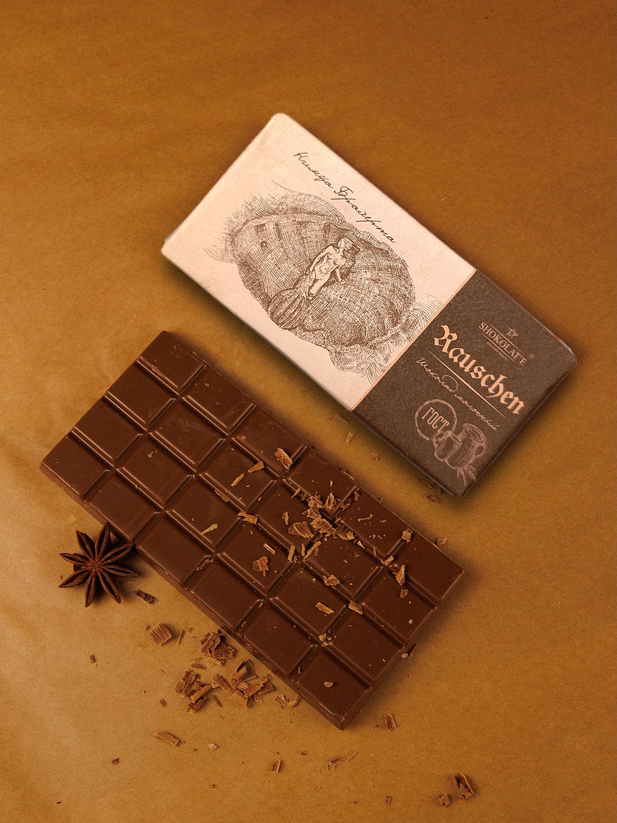 Молочный шоколад (35% какао). Обертка с изображением "Нимфы" Герхарда Брахерта в г. Светлогорск (нем. Rauschen)
