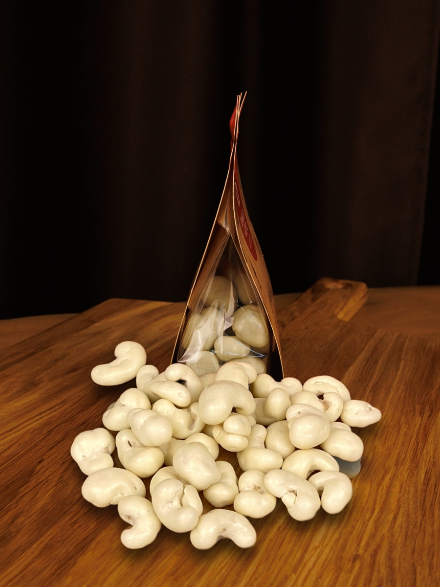 Обжаренный кешью в натуральном белом шоколаде.
