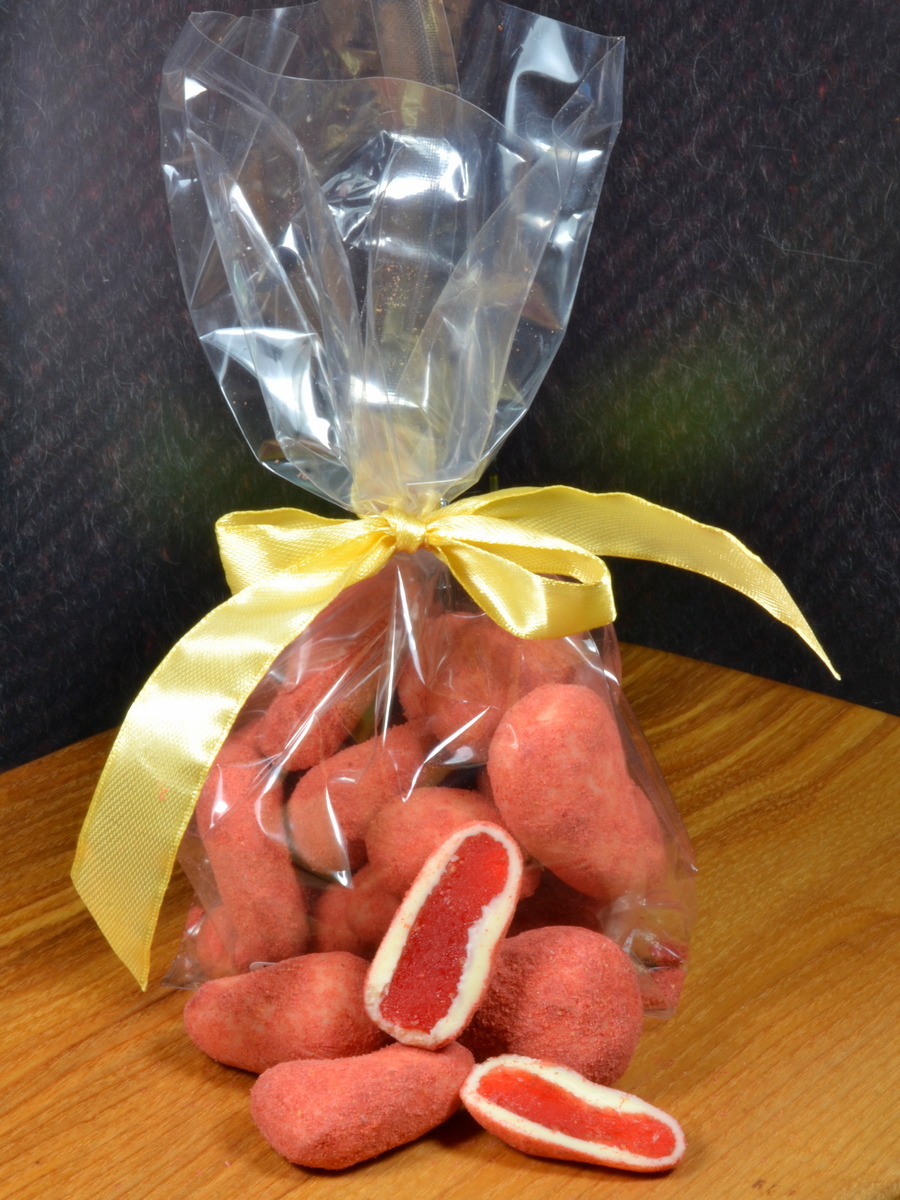 Состав продукта: клубника; клубника сублимационной сушки; белый шоколад (сахар, какао-масло, сухое обезжиренное молоко, сыворотка сухая молочная, молочный жир, эмульгатор – соевый лецитин (0,4%), ароматизатор «Ваниль»). Белый шоколад содержит: общий сухой остаток какао – не менее 20 %, сухой молочный остаток - не менее 14 %, молочный жир – не менее 2,5 %. Может содержать следы переработки арахиса, глютена (белка злаковых культур).