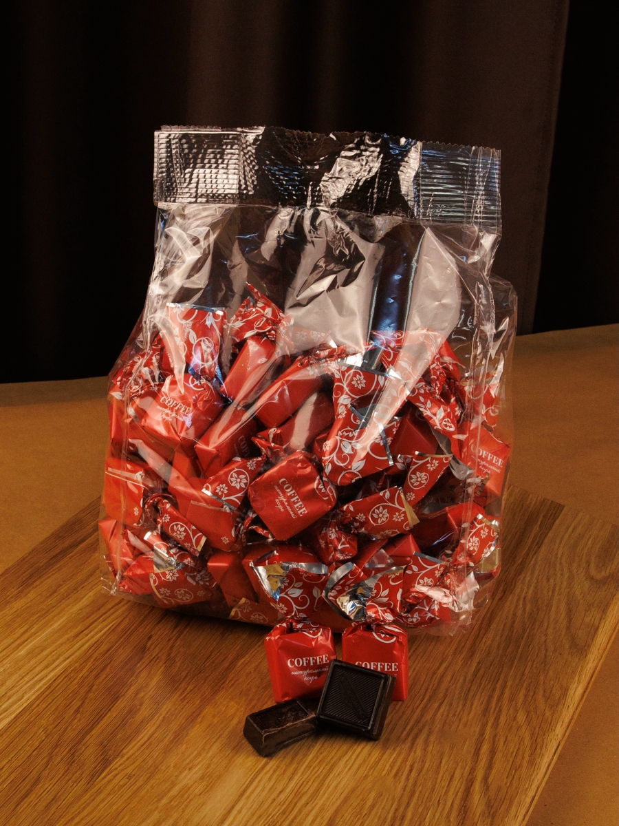 Шоколадное пралине с натуральным кофе в шоколадной глазури.