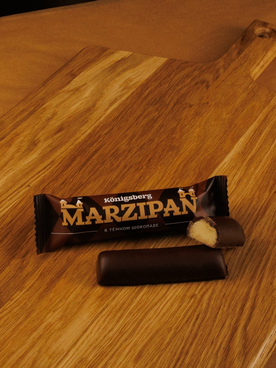Марципановый батончик (33% миндаля) в натуральном темном шоколаде.