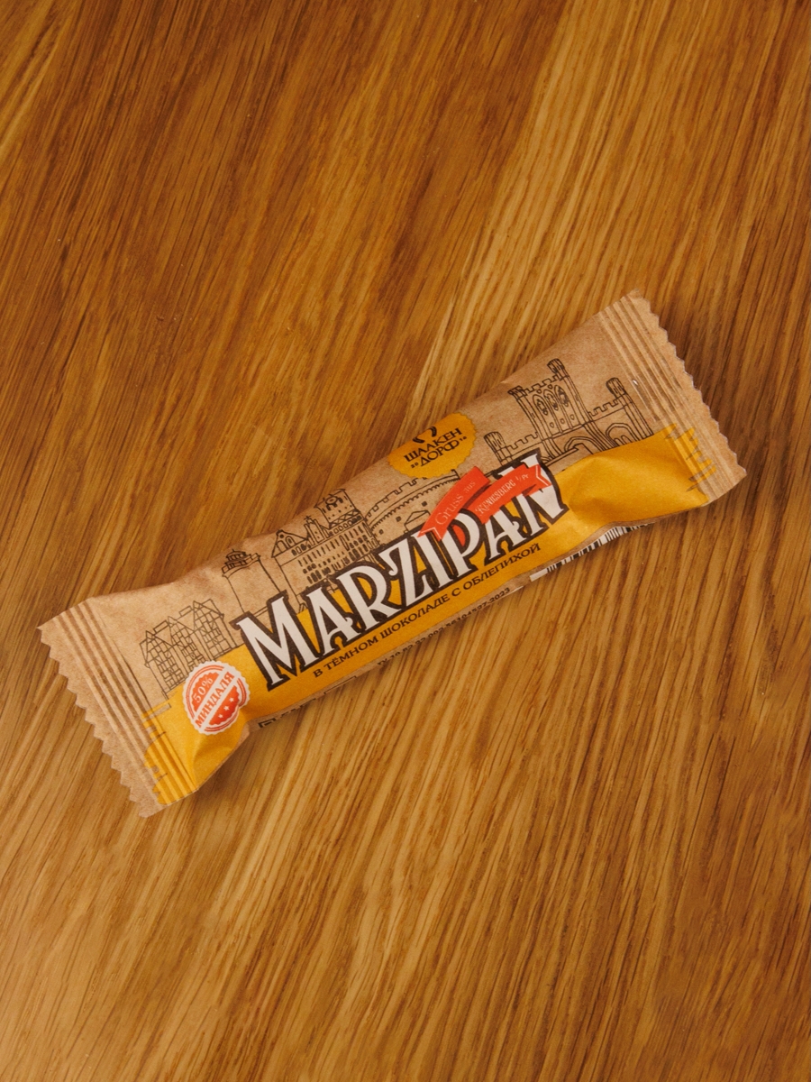 Состав: марципан (сахар, миндаль (50%), сироп глюкозно-фруктозный, агент влагоудерживающий – сорбит, ферментный препарат микробного происхождения – инвертаза, регулятор кислотности – лимонная кислота); темный шоколад (какао тертое натуральное, сахар, какао-масло, эмульгатор – соевый лецитин, ароматизатор «Ваниль»); облепиха сублимационной сушки. Может содержать следы переработки молочных продуктов, арахиса, глютена (белка злаковых культур). Возможно наличие косточек в ягодах облепихи.