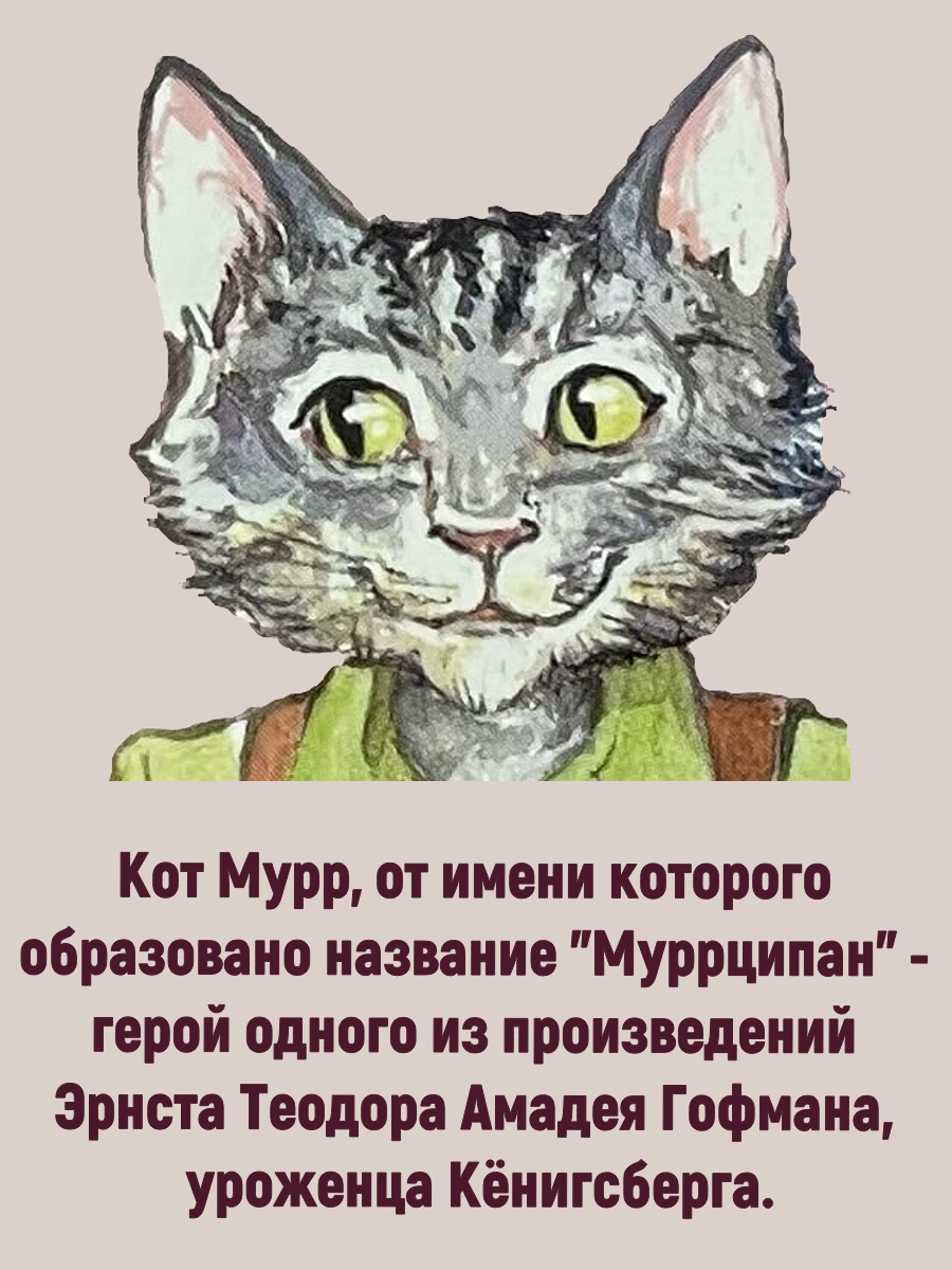 Марципановая плитка в натуральном молочном шоколаде. В подарочной коробке с изображением кота Мурра, героя одного из произведений Эрнста Теодора Амадея Гофмана.