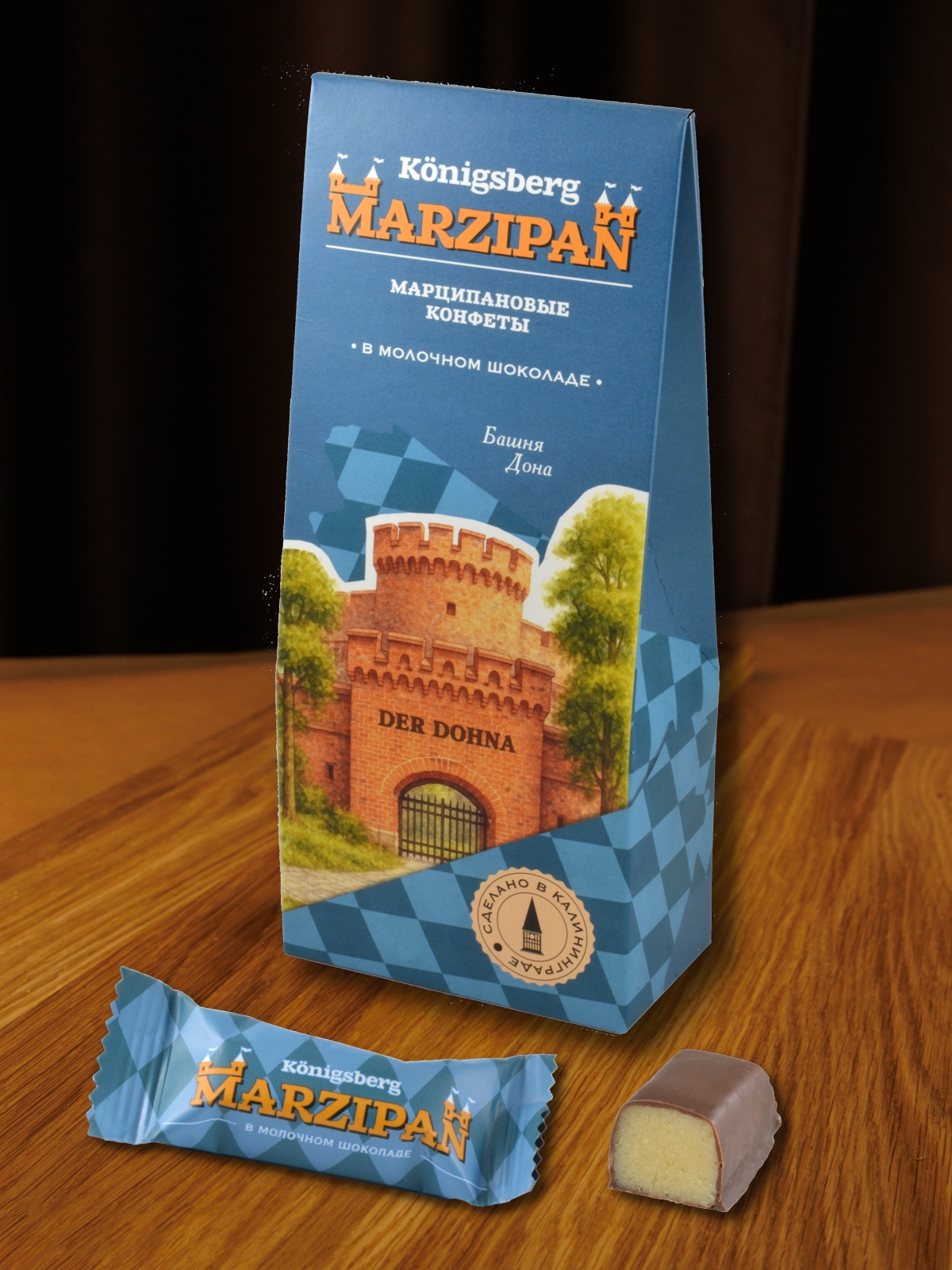 Состав: марципан (сахар, миндаль (33%), сироп глюкозно-фруктозный, агент влагоудерживающий: сорбит, ферментный препарат микробного происхождения: инвертаза, регулятор кислотности: лимонная кислота); молочный шоколад (сахар, какао-масло, сухое обезжиренное молоко, сыворотка сухая молочная, какао-порошок, молочный жир, какао тертое натуральное, эмульгатор: соевый лецитин, ароматизатор "Ваниль").