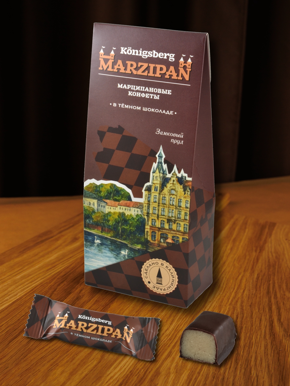 Состав: марципан (сахар, миндаль (33%), сироп глюкозно-фруктозный, агент влагоудерживающий: сорбит, ферментный препарат микробного происхождения: инвертаза, регулятор кислотности: лимонная кислота); темный шоколад (какао тертое натуральное, сахар, какао-масло, эмульгатор: соевый лецитин, ароматизатор "Ваниль".