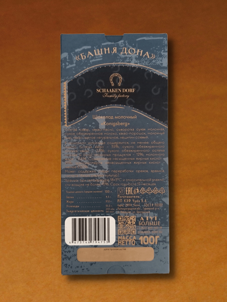 Молочный шоколад (35% какао). Обертка с изображением Башни Дона в Калининграде.