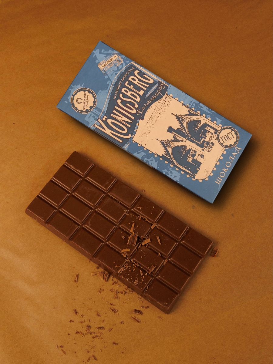 Молочный шоколад (35% какао). Обертка с изображением Фридландских ворот в Кёнигсберге.