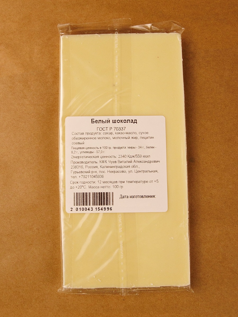 Белый шоколад (30% какао-масла).