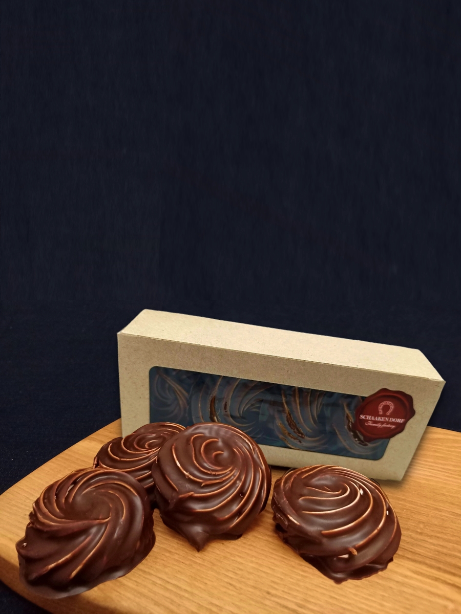 Каждый кусочек этого зефира обладает вкусом темного шоколада, который дополняет десертный ассортимент. Благодаря уникальной текстуре, зефир тает во рту, оставляя после себя сладкое послевкусие. Этот продукт отлично подходит для использования в качестве угощения на праздниках или для простых семейных чаепитий.