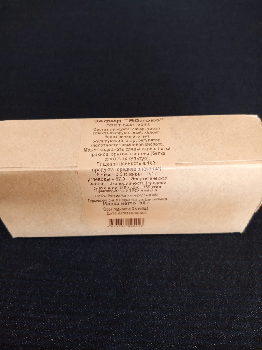 Состав: сахар, сироп глюкозно-фруктозный, яблоко, белок яичный, агент желирующий: агар, регулятор кислотности: лимонная кислота.